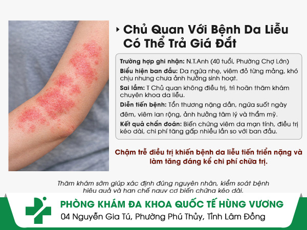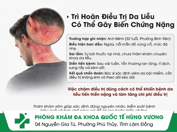 Đừng xem nhẹ ngứa – đỏ – rát! Nhiều bệnh da liễu có thể dẫn đến nhiễm trùng huyết, để lại sẹo vĩnh viễn, thậm chí ảnh hưởng tâm lý nếu không điều trị sớm. Với hơn 10 năm khám chữa các bệnh ngoài da tại TP.HCM, Phòng Khám Da Liễu Hùng Vương là nơi hàng ngàn người đã chọn để phục hồi làn da khỏe mạnh và sự tự tin.