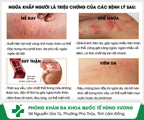 Ngoài ra, người bệnh hãy chú ý đến một số bệnh lý khác cũng có biểu hiện ngứa toàn thân như: tiểu đường, zona thần kinh, vảy nến, ghẻ lở, thủy đậu, nấm da...