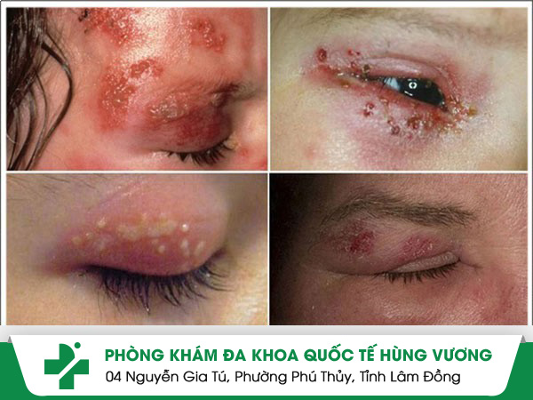 Mụn nước chứa dịch trong, khi vỡ ra sẽ gây đau nhức, khó chịu ở mắt, nếu bị nhiễm khuẩn sẽ để lại sẹo sau khi lành.